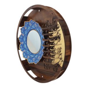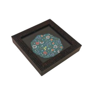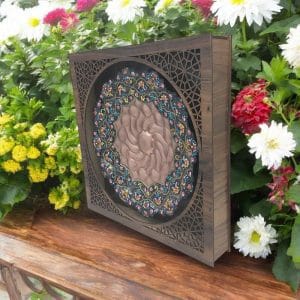 بشقاب مس و پرداز دیوارکوب 25 سانتی با قاب چوبی کد DK25519