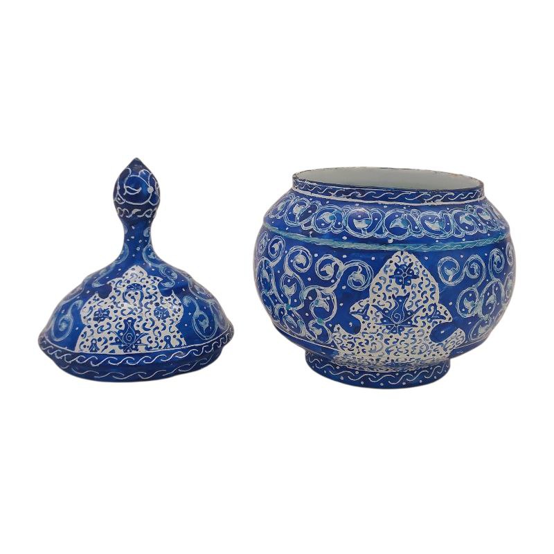 قندان میناکاری با طرحی خاص و زیبا به رنگ آبی مناسب برای استفاده در ویترین و دکور و مناسب برای پذیرایی