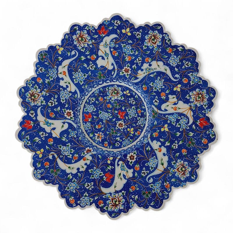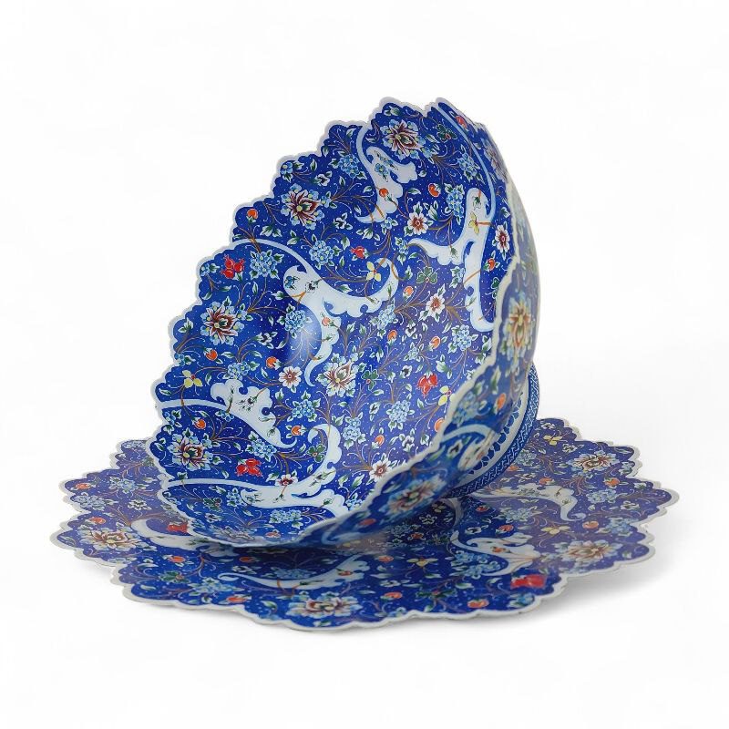 کاسه و بشقاب میناکاری با طرحی خاص و زیبا به رنگ آبی مناسب برای استفاده در ویترین و دکور و مناسب برای پذیرایی