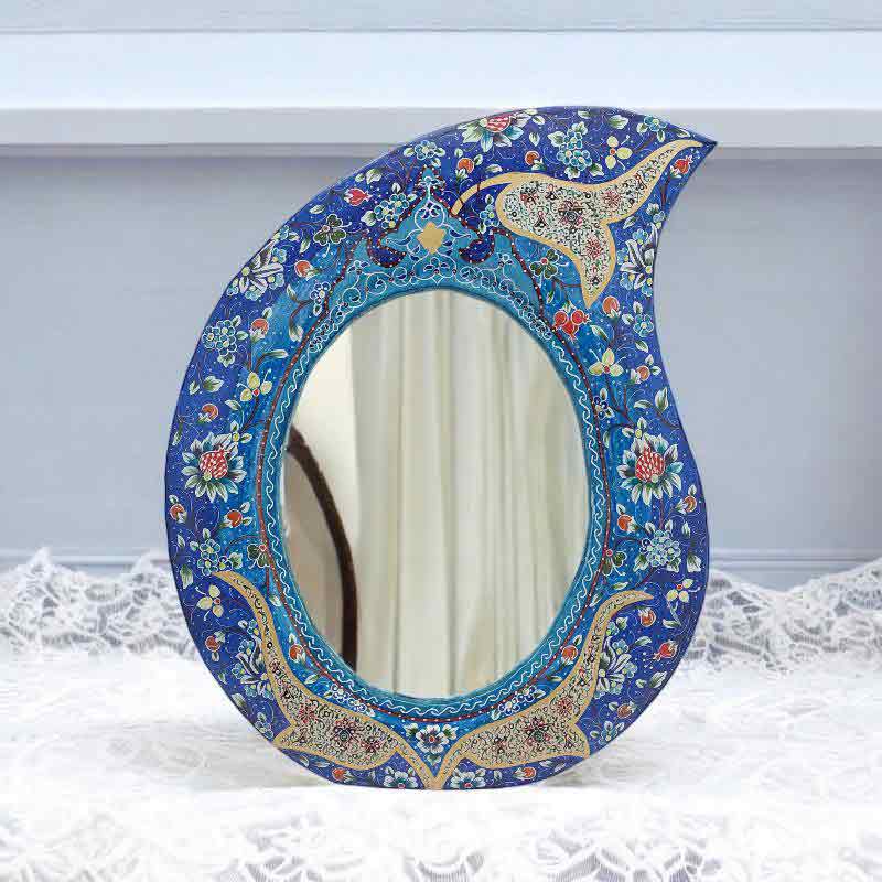 آیینه میناکاری با طرحی خاص و زیبا به رنگ آبی مناسب برای استفاده در ویترین و دکور