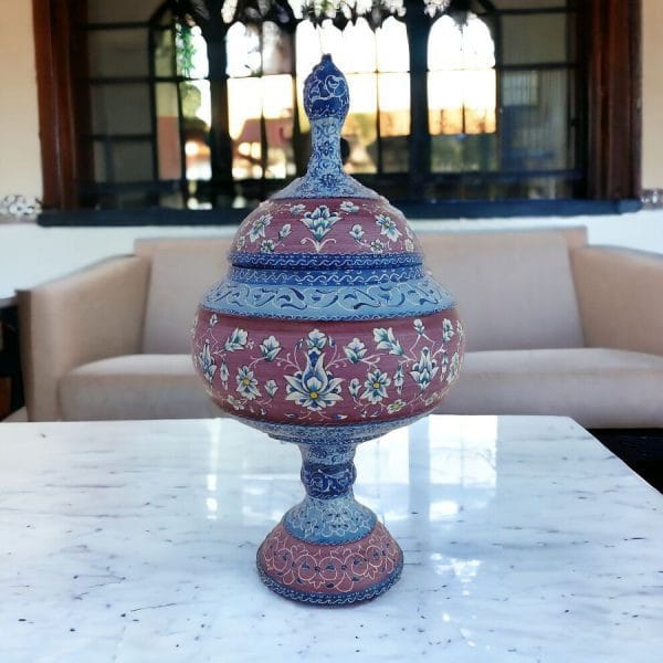 شکلات خوری با ارتفاع 26 سانتی میناکاری با طرحی خاص و زیبا همراه با طرح اسلیمی خطایی مناسب برای استفاده در ویترین و دکور و مناسب برای پذیرایی