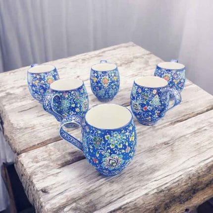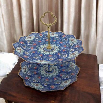 قوری پایه دار میناکاری با طرحی خاص و زیبا به رنگ آبی مناسب برای استفاده در ویترین و دکور و قابل شست و شو و استفاده روزانه