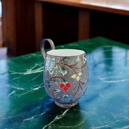 قوری پایه دار میناکاری با طرحی خاص و زیبا به رنگ آبی با ارتفاع 23 سانتی متر مناسب برای استفاده در ویترین و دکور و قابل شست و شو و استفاده روزانه برای دم کردن چایی و انواع نوشیدنی های گرم.