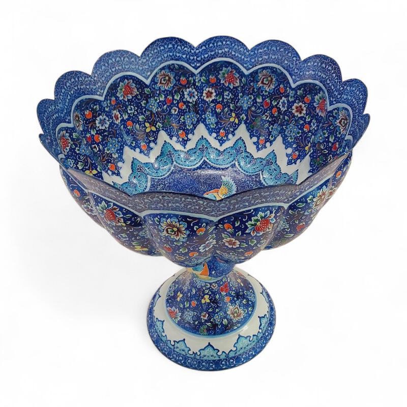 میوه خوری میناکاری با ارتفاع 31 سانتی متر قابل استفاده برای میوه خوری و آجیل خوری با طرحی خاص و زیبا همراه با طرح اسلیمی خطایی مناسب برای استفاده در ویترین و دکور و مناسب برای پذیرایی