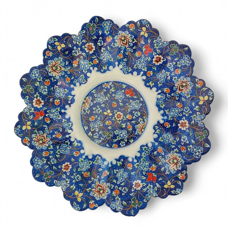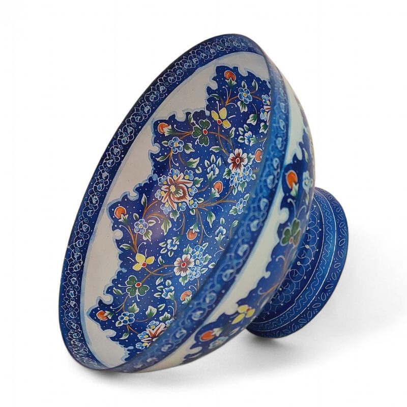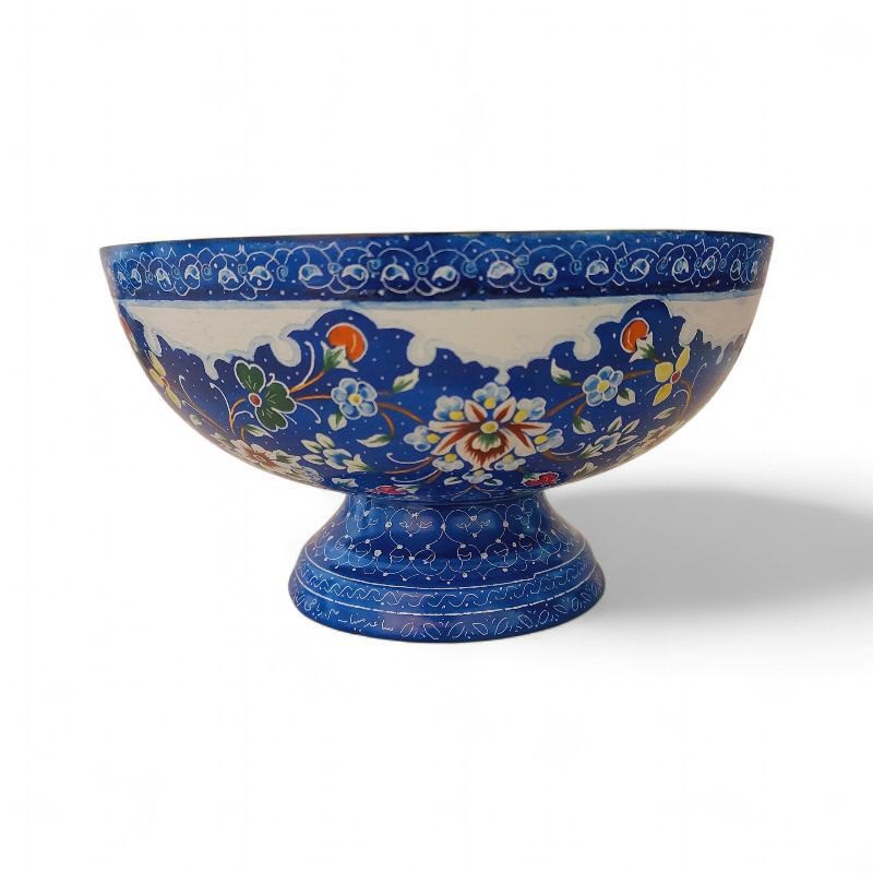 کاسه و بشقاب میناکاری 25 سانتی با طرحی خاص و زیبا همراه با طرح اسلیمی خطایی مناسب برای خوردن میوه ، سوپ، دسر و یا قابل استفاده در ویترین و دکور و مناسب برای پذیرایی